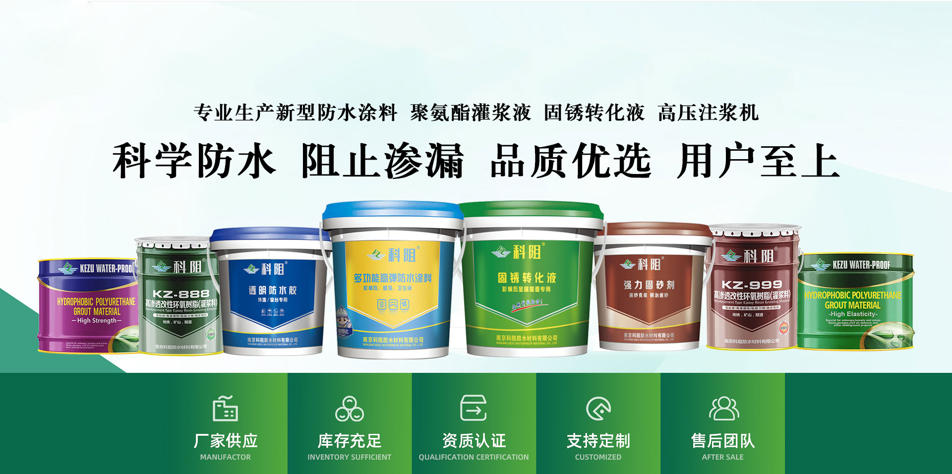 科阻品牌堅守20余年,產品種類繁多。防水涂料、鐵銹轉化劑、注漿機等配套一應俱全。